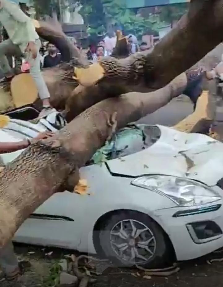 ग्वालियर के प्रसिद्ध अचलेश्वर महादेव मंदिर से कुछ ही दूरी पर महादजी चौराहा थीम रोड पर एक विशालकाय पेड़ अचानक टूट कर कार पर गिर पड़ा इस हादसे में चमत्कारिक ढंग से कर चालक को कोई चोट नहीं लगी.।