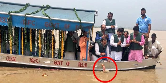 पूर्व प्रधानमंत्री अटल बिहारी वाजपेयी की अस्थियां हिंदू रीति-रिवाज और वैदिक मंत्रोच्चार के साथ दिल्ली में यमुना में विसर्जित कर दी गईं। इस दौरान भाजपा प्रदेशाध्यक्ष मनोज तिवारी ने कहा कि सोनिया विहार के तट पर अटल जी की अस्थियों का विसर्जन एक ऐतिहासिक क्षण है। इसलिए इस तट का नाम अटल बिहारी वाजपेयी के नाम पर रखा जाए। मनोज तिवारी ने इसी कार्यक्रम की कुछ तस्वीरें अपने ट्विटर अकाउंट पर डाली हैं जो बहुत अजीब हैं और तेजी से वायरल हो रही हैं।