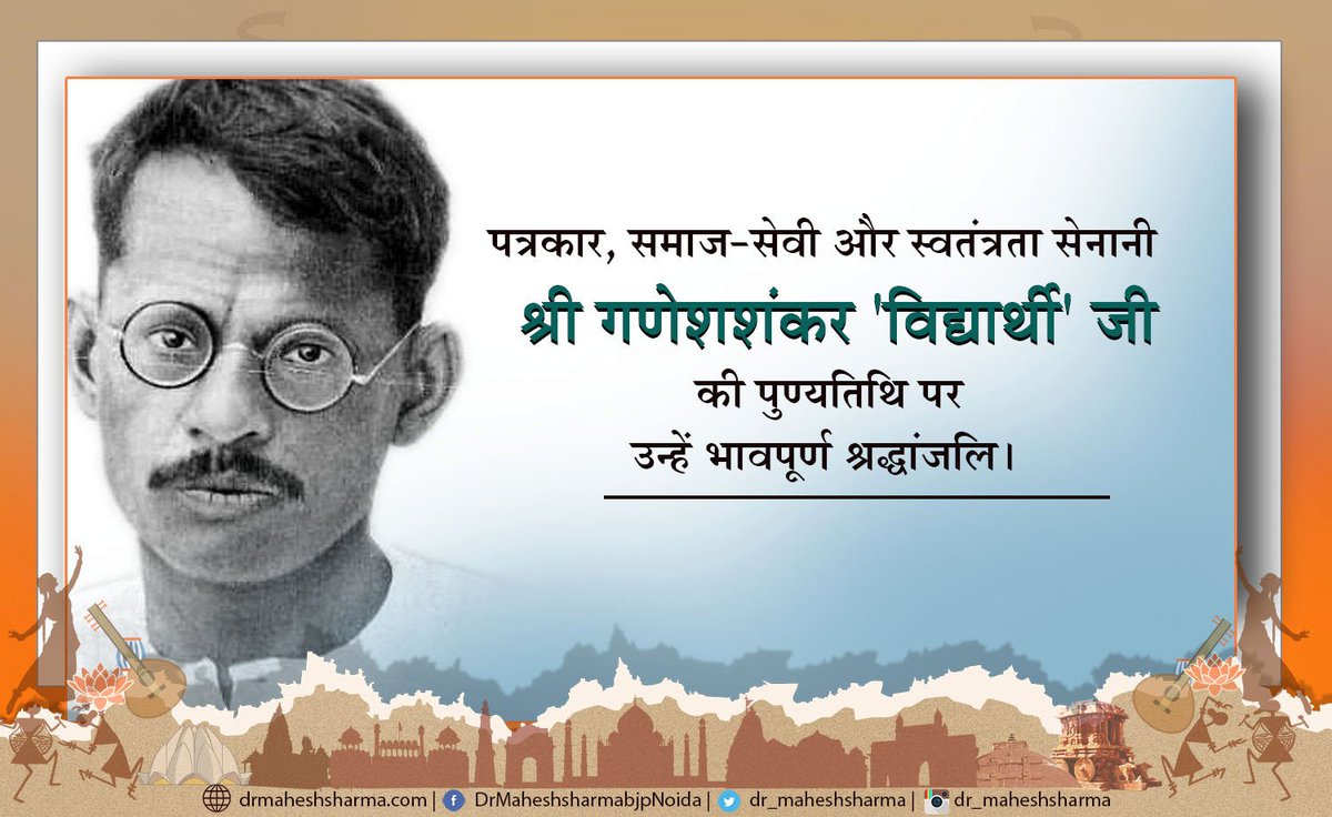 क्रांतिकारी पत्रकार श्री गणेशशंकर ‘विद्यार्थी’ का जन्म 1890 ई0 (आश्विन शुक्ल 14, रविवार, संवत 1947) को प्रयाग के अतरसुइया मौहल्ले में अपने नाना श्री सूरजप्रसाद श्रीवास्तव के घर में हुआ था। इनके नाना सहायक जेलर थे। इनके पुरखे हथगांव (जिला फतेहपुर, उत्तर प्रदेश) के मूल निवासी थे; पर जीवनयापन के लिए इनके पिता मुंशी जयनारायण अध्यापन एवं ज्योतिष को अपनाकर जिला गुना (मध्य प्रदेश) के गंगवली कस्बे में बस गये। प्रारम्भिक शिक्षा वहाँ के एंग्लो वर्नाक्युलर स्कूल से लेकर गणेश ने अपने बड़े भाई के पास कानपुर आकर हाईस्कूल की परीक्षा उत्तीर्ण की। इसके बाद उन्होंने प्रयाग में इण्टर में प्रवेश लिया। उसी दौरान उनका विवाह हो गया, जिससे पढ़ाई छूट गयी; पर तब तक उन्हें लेखन एवं पत्रकारिता का शौक लग गया था, जो अन्त तक जारी रहा।