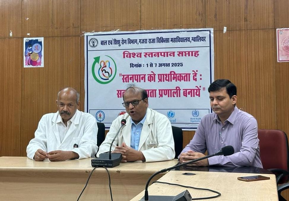 ग्वालियर अकादमी के अध्यक्ष प्रो. डॉ. घनश्याम दास ने बताया कि शिशु के पहले छह महीनों तक केवल स्तनपान ही पर्याप्त होता है और इस अवधि में कोई भी ऊपरी आहार नहीं दिया जाना चाहिए। कार्यक्रम में प्रमुख रूप से प्रो.डॉ.सुनीता प्रसाद, प्रो.डॉ.वायएस वर्मा, प्रो.डॉ.नीतू शर्मा, डॉ.सात्विक बंसल, डॉ.एसएस राजपूत और डॉ.अवधेश वर्मा उपस्थित थे l यह कार्यक्रम बाल एवं शिशु रोग विभाग के साथ ग्वालियर एकेडमिक ऑफ पीडियाट्रिक्स के सहयोग से किया जा रहा है।