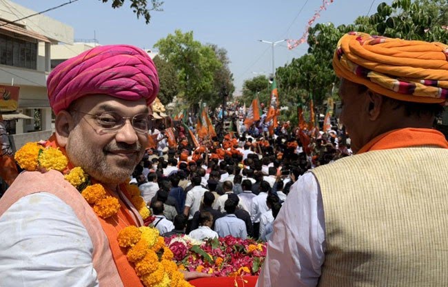 बीजेपी के राष्ट्रीय अध्यक्ष अमित शाह ने लोकसभा चुनाव के लिए गांधीनगर से अपना नामांकन दाखिल किया. नामांकन से पहले अहमदाबाद में अमित शाह ने जनसभा को संबोधित करते हुए कहा कि मैं आडवाणी जी की विरासत का आगे बढ़ाने की कोशिश करूंगा. इस जनसभा को गृहमंत्री राजनाथ सिंह, केंद्रीय मंत्री नितिन गडकरी, केंद्रीय मंत्री राम विलास पासवान, शिवसेना प्रमुख उद्धव ठाकरे, अकाली दल के नेता प्रकाश सिंह बादल ने भी संबोधित किया. इसके बाद अमित शाह ने अहमदाबाद से गांधीनगर तक चार किलोमीटर लंबा भव्य रोड शो निकाला.