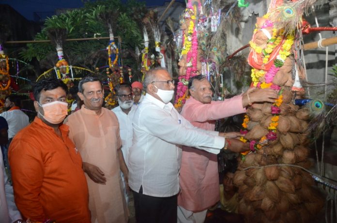 ग्वालियर, न.सं.। गोगा नवमी के उपलक्ष्य में शुक्रवार को नई सड़क स्थित राष्ट्रीय स्वयंसेवक संघ के कार्यालय राष्ट्रोत्थान न्यास भवन में छड़ी (गोगा ध्वज) निशान पूजन का कार्यक्रम हुआ। इस दौरान प्रांत कार्यवाह यशवंत इंदापुरकर, मुख्य वक्ता भारतीय शिक्षण मंडल के राष्ट्रीय महामंत्री डॉ. उमाशंकर पचौरी, विभाग संघचालक विजय गुप्ता एवं विभिन्न समाज के प्रमुखों ने छड़ी पूजन किया। साथ ही गोगादेव की छड़ी लेकर चलने वाले भक्तों को सम्मानित किया।