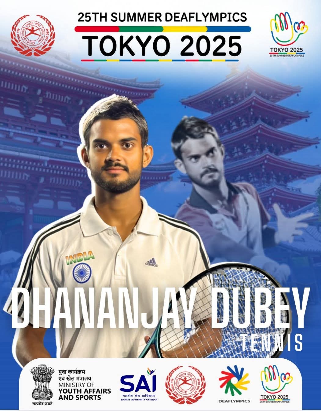 15 से 27 नवंबर तक जापान की राजधानी टोक्यो में होने वाले डेफ ओलिंपिक 2025 में भाग लेने वाले भारतीय दल के प्रति भारत सरकार के खेल मंत्रालय ने शुभकामना प्रेषित करते हुए अपने आधकारिक पेज पर पोस्टर जारी किया। ग्वालियर की दृष्टि से डेफ ओलिंपिक 2025 इसलिए महत्वपूर्ण है क्यों कि ग्वालियर के प्रसिद्ध प्रतिभाशाली टेनिस खिलाड़ी धनंजय दुबे टोकियो में आयोजित ओलंपिक 2025 में भारत का टेनिस में प्रतिनिधित्व करेंगे। वे 15 से 27 नवंबर तक जापान की राजधानी टोक्यो में दमखम दिखाएंगे पूरे देश को उनसे स्वर्ण पदक की आशा है। अहमदाबाद में 20 से 27 अगस्त तक हुए ट्रायल्स में उनके शानदार प्रदर्शन पर उनका चयन हुआ था। धनंजय ने 2022 में ब्राजील डेफ ओलिंपिक में रजत जीतकर देश का मान बढ़ाया था।