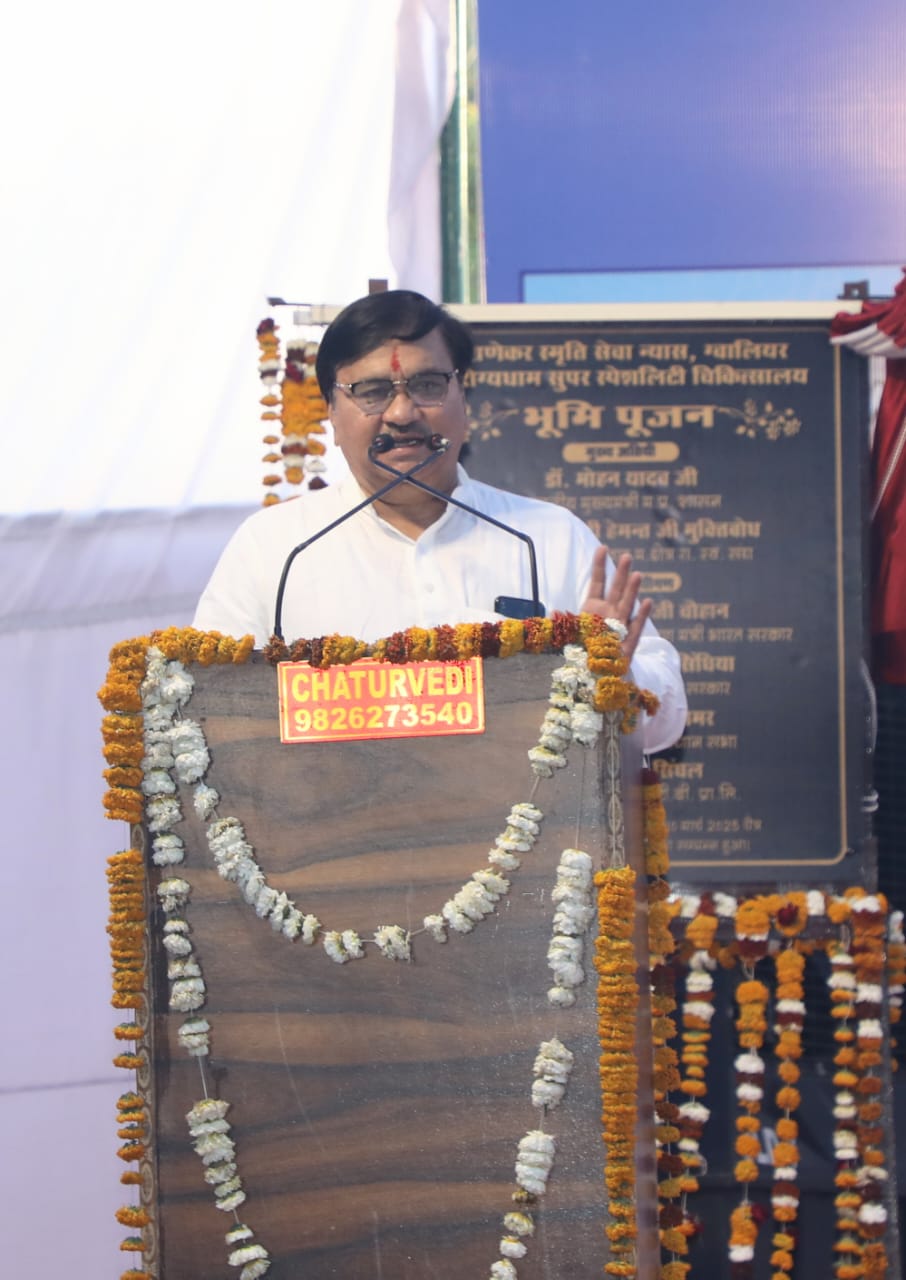 मुख्यमंत्री डॉ. मोहन यादव ने तराणेकर स्मृति सेवा न्यास द्वारा बनाए जा रहे आरोग्यधाम सुपर स्पेशिलिटी चिकित्सालय के लिये अपना शुभकामना संदेश भेजा। भूमिपूजन समारोह में मुख्यमंत्री डॉ. यादव के संदेश का वाचन श्री मधुसूदन भदौरिया ने किया। मुख्यमंत्री डॉ. यादव ने अपने संदेश में कहा कि चिकित्सा सेवा के क्षेत्र में तराणेकर स्मृति सेवा न्यास अग्रणी प्रकल्प के रूप में कार्य कर रहा है। आरोग्यधाम चिकित्सालय ग्वालियर द्वारा विगत 14 वर्ष से समाज के सभी वर्गों को “उचित मूल्य – उच्च गुणवत्ता सिद्धांत” पर अत्याधुनिक चिकित्सा सुविधायें उपलब्ध कराई जा रही हैं, इससे चिकित्सालय ने समाज में विश्वास स्थापित किया है, यह एक सराहनीय पहल है। उन्होंने आशा व्यक्त की है कि आरोग्यधाम सुपर स्पेशिलिटी चिकित्सालय चिकित्सा सुविधा के क्षेत्र में अपने सिद्धांतों के आधार पर सेवा देते हुए ग्वालियर ही नहीं, सम्पूर्ण प्रदेश व देश में अपनी विलक्षण पहचान का विस्तार करेगा। उन्होंने अपने संदेश में यह भी कहा है कि देश में शिक्षा व चिकित्सा का क्षेत्र व्यापक है। प्रधानमंत्री श्री नरेन्द्र मोदी के नेतृत्व में चिकित्सा क्षेत्र में आयुष्मान योजना के अंतर्गत वरिष्ठ जन सहित सभी नागरिकों को अनेक सुविधायें उपलब्ध कराई जा रही हैं।
