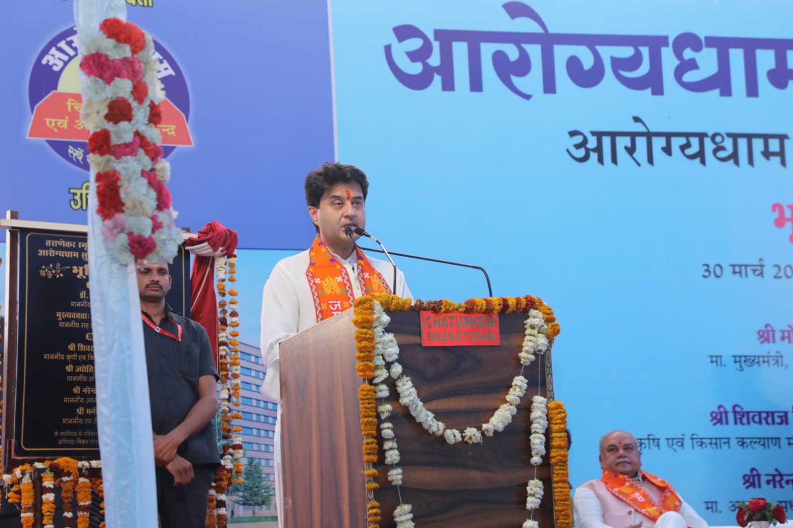 केन्द्रीय संचार एवं पूर्वोत्तर क्षेत्र विकास मंत्री श्री सिंधिया ने कहा कि जो राष्ट्र स्वस्थ व शिक्षित मनुष्य तैयार करने में सक्षम होता है, उस राष्ट्र को आगे बढ़ने से विश्व की कोई शक्ति नहीं रोक सकती। आरोग्यधाम प्रकल्प उसी भाव के साथ मानव कल्याण व मानव सेवा में जुटा है। आरोग्यधाम चिकित्सालय केवल ग्वालियर – चंबल संभाग ही नहीं, उत्तरप्रदेश व राजस्थान के समीपवर्ती जिलों के लोगो को कम कीमत पर उच्च गुणवत्तायुक्त स्वास्थ्य सेवायें मुहैया करा रहा है। उन्होंने कहा कि आरोग्यधाम सुपर स्पेशिलिटी चिकित्सालय के निर्माण में उनकी ओर से हर संभव मदद मिलेगी।