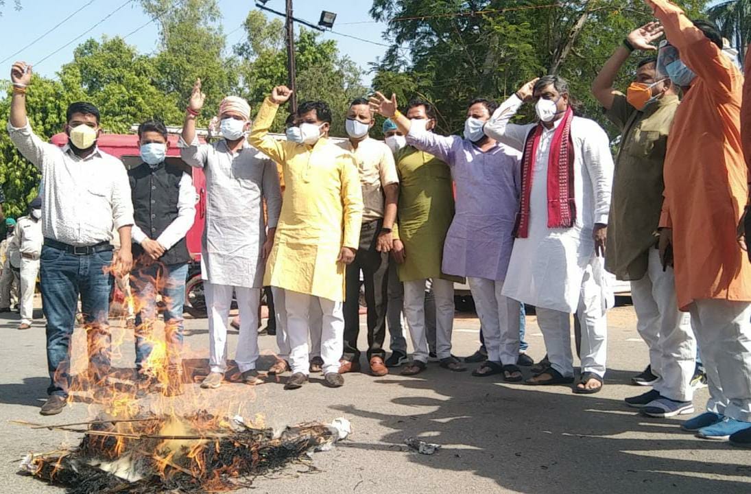 पूर्व मुख्यमंत्री कमलनाथ का पुतला दहन