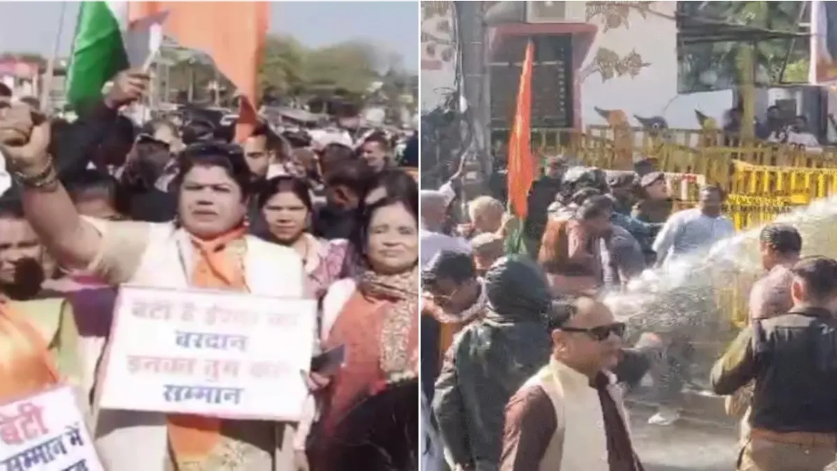 पुलिस ने उन्हें रोकने की कोशिश की, लेकिन प्रदर्शनकारी नहीं माने और घेराबंदी को तोड़कर बाणगंगा चौराहे तक पहुंच गए। बैरिकेडिंग के बावजूद वे आगे बढ़ने की कोशिश करते रहे। हालात को काबू में करने के लिए पुलिस ने प्रदर्शनकारियों पर वाटर कैनन का इस्तेमाल कर तितर-बितर किया। इस दौरान पुलिस ने अनिल मिश्रा समेत ब्राह्मण संगठनों के कई नेताओं को हिरासत में ले लिया।