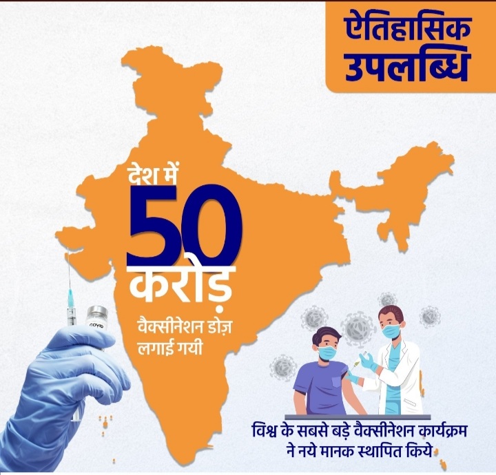 पीएम मोदी ने ट्वीट किया, ”कोरोना के खिलाफ भारत की जंग को तेज गति मिली है। टीकाकरण की संख्या 50 करोड़ के पार चली गई है। हम इन आंकड़ों को बढ़ाते रहने की उम्मीद करते हैं और ‘सबको वैक्सीन मुफ्त वैक्सीन आंदोलन’ के तहत सभी नागरिकों का टीकाकरण सुनिश्चित किया जाएगा।”