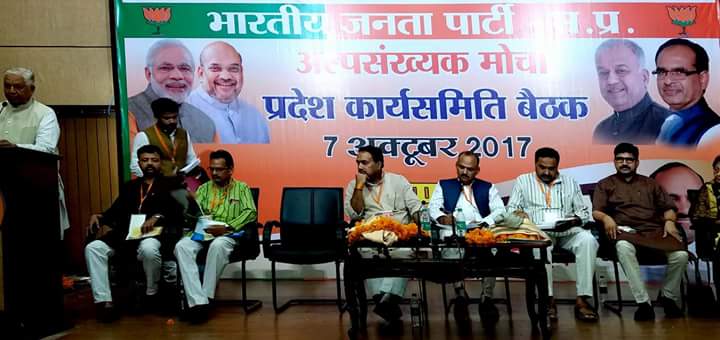 डॉ. सहस्रबुद्धे ने कहा कि कांग्रेस समुदायवार विशेष दर्जा देने की सियासत अपनाती रही है। जिसका लक्ष्य विकास नहीं पृथक वोट बैंक बनाए रखना और उन्हें प्रगति के मार्ग से विचलित करते रहना था। भारतीय जनसंघ से लेकर भारतीय जनता पार्टी के लिए मनुष्य वोट बैंक नहीं इंसान है उसे प्रगति करने का अधिकार है, इसे सुरक्षित करना पार्टी की सरकार का सर्वोच्च प्राथमिकता का कर्त्तव्य है। उन्होंने कहा कि पार्टी की रीति नीति और केन्द्र तथा राज्य की सरकारों की जनहितैषी नीतियों को जनता तक पहंुचाने के लिए अल्पसंख्यक बंधु उर्दू में ब्लाग का इस्तेमाल करके समाज की बड़ी सेवा कर सकते हैं। उन्होंने याद दिलाया कि पार्टी ने हमेशा स्त्री और पुरूष को समानता का अधिकार दिलाने के लिए संघर्ष किया है। तलाक पर पार्टी का रचनात्मक दृष्टिकोण जग जाहिर हुआ है और उससे लैगिंग समानता सुनिश्चित हुई है। इसी तरह भाजपा की सरकार ने कौशल विकास मंत्रालय बनाकर जगह जगह कौशल विकास केन्द्र खोलकर किशोर और युवकों के सामने बड़े इंजीनियर तकनीकी मर्मज्ञ बनने का अवसर दिया है, जिससे रोजगार उनके पीछे पीछे दौड़ने लगा है। इस अवसर पर मोर्चा के प्रदेश अध्यक्ष डाॅ. सनवर पटेल ने केन्द्र और राज्य सरकार की नीतियों के क्रियान्वयन में मोर्चा की भागीदारी की जानकारी दी और बताया कि मोदी सरकार की शादी शगुन योजना का अनुकूल असर हुआ है। इससे महिलाओं में शिक्षा के प्रति रूचि जाग्रत हुई है। मध्यप्रदेश में 200 से अधिक कल्याणकारी योजनाओं को घर घर पहंुचाने के लिए अल्पसंख्यक मोर्चा ने दस्तक घर घर कार्यक्रम को लोकप्रिय बनाया है। उन्होंने भरोसा दिलाया कि अल्पसंख्यक मोर्चा मिशन 2018 और 2019 की सफलता के लिए पूरी तरह तैयार है। हर मतदान केन्द्र पर मोर्चा ने नए और जुझारू 5-5 कार्यकर्ताओं की तैनाती का बीड़ा उठाया है। पूर्व में श्री बृजेन्द्रप्रताप सिंह और डॉ. सनवर पटेल ने डॉ. सहस्रबुद्धे का पुष्पगुच्छ भेंटकर स्वागत किया। कार्यक्रम का संचालन श्री रफत वारसी ने किया।