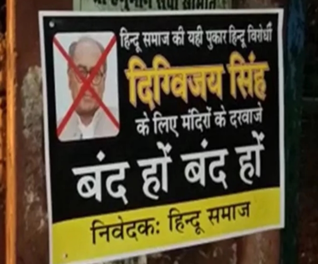 मन्दिरों में दिग्विजय सिंह के खिलाफ लगे पोस्टर