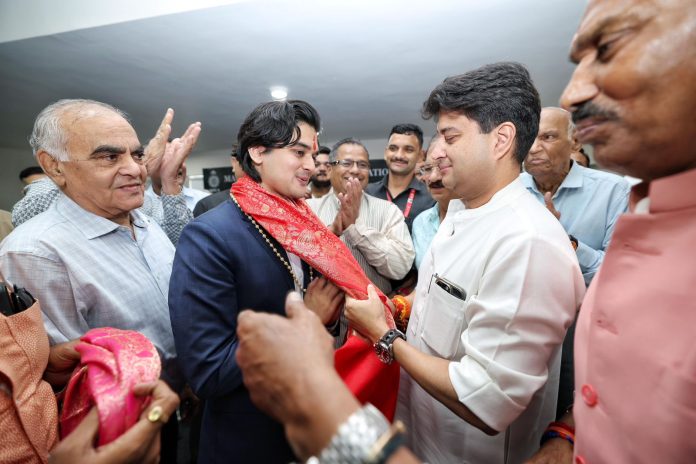 महानआर्यमन सिंधिया को जिला मंत्री सत्येन्द्र शर्मा ने बधाई दी