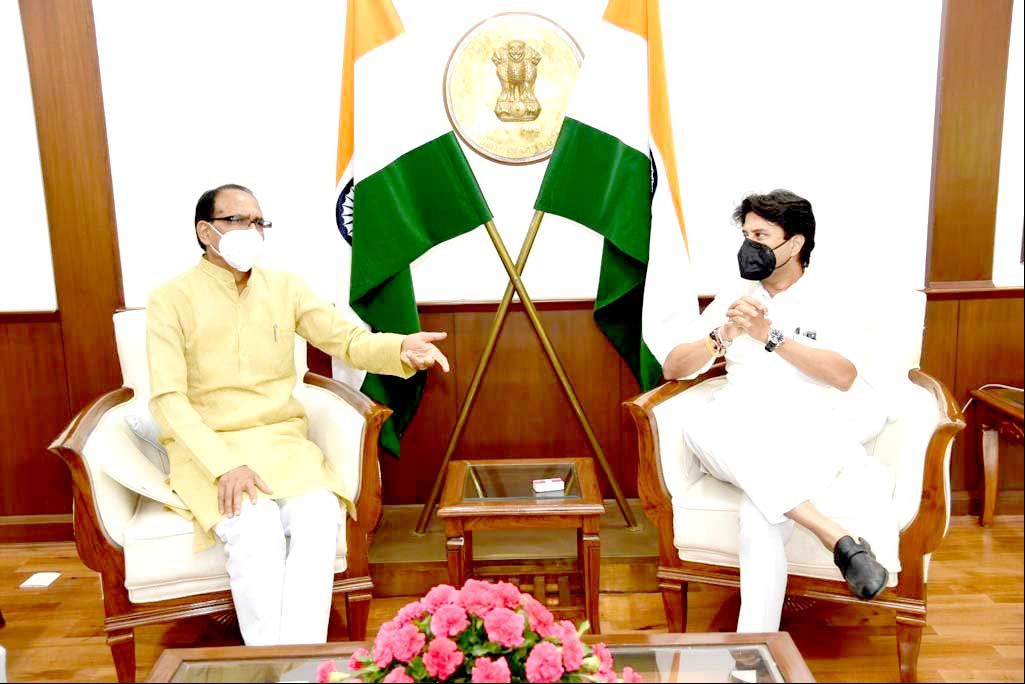 मुख्यमंत्री शिवराज ने सिंधिया से ग्वालियर में नये एयरपोर्ट बनाने की स्वीकृति दिये जाने की माँग की