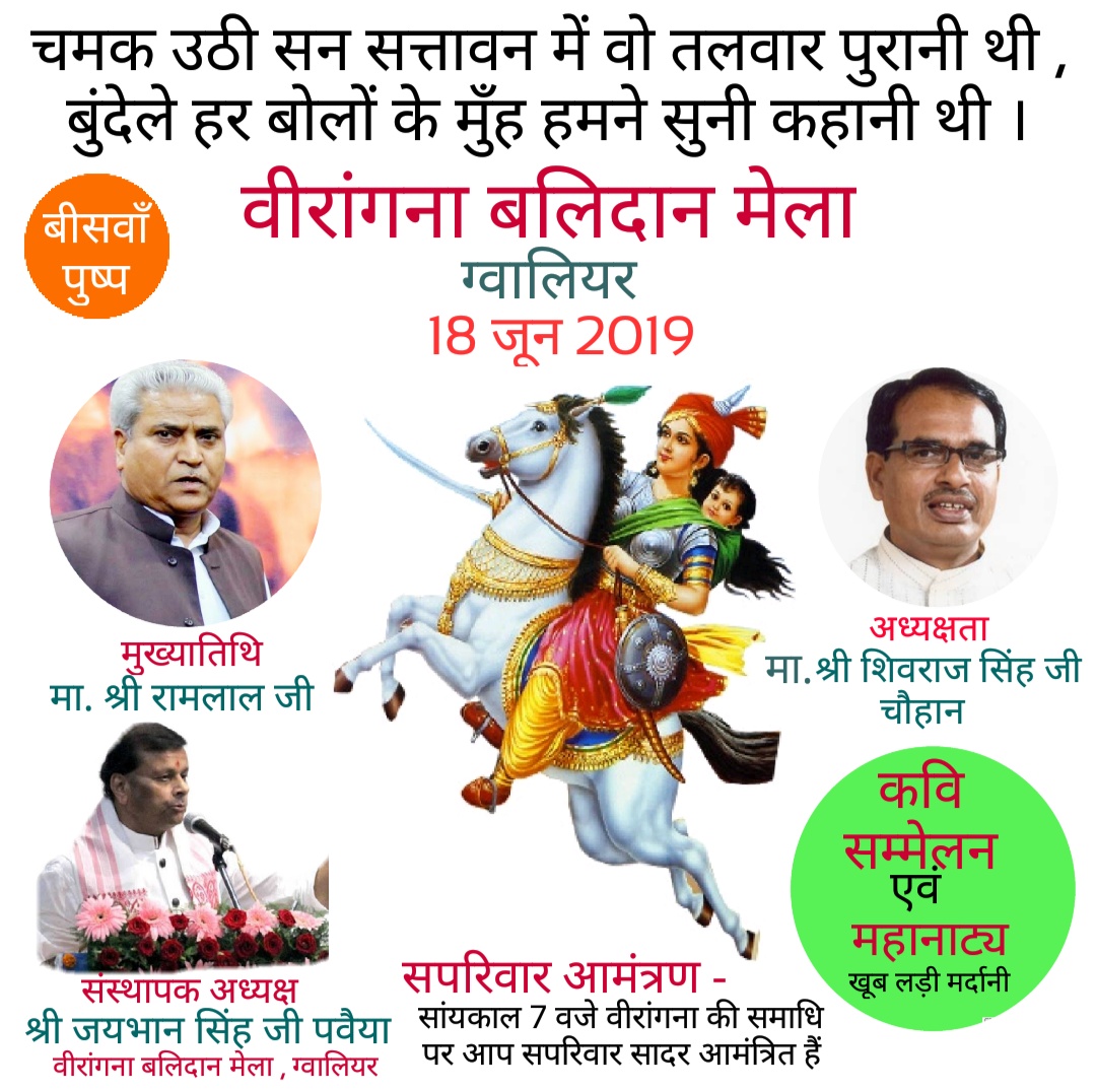 उल्लेखनीय है की मध्यप्रदेश की ऐतिहासिक नगरी ग्वालियर में भाजपा के वरिष्ठ नेता , राष्ट्रवादी विचारक चिंतक पूर्व सांसद जयभान सिंह पवय्या द्वारा वीरांगना के बलिदान को याद करने के लिए विगत 20 वर्षों से बलिदान मेले का आयोजन किया जाता है।