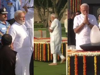 आज शाम 7 बजे दूसरी बार प्रधानमंत्री पद की शपथ लेने जा रहे नरेंद्र मोदी ने दिन की शुरुआत बापू की समाधि राजघाट पर जाकर उन्हें नमन से की। उसके बाद उन्होंने अटल बिहारी वाजपेयी की समाधि पर जाकर उन्हें श्रद्धांजलि दी।
