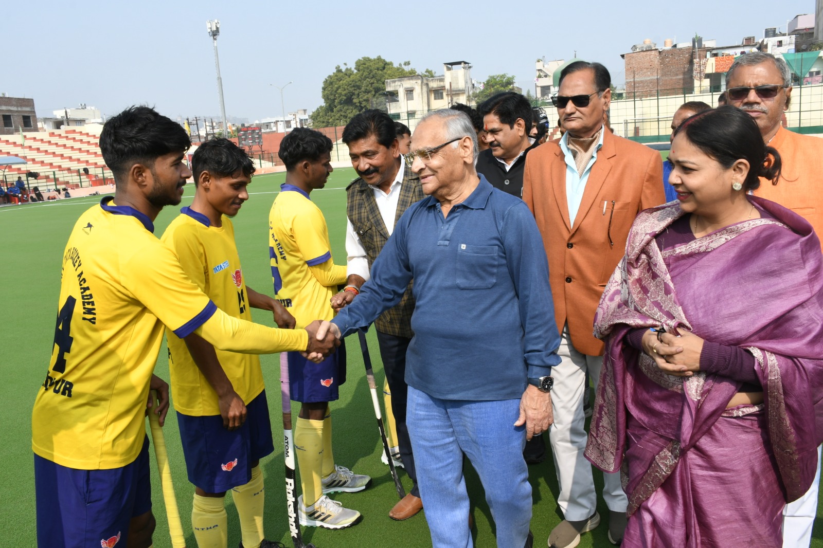 रेलवे हाॅकी स्टेडियम पर आयोजित की जा रही 84वी अखिल भारतीय सिंधिया स्वर्ण कप हॉकी प्रतियोगिता के शुभारंभ अवसर पर कार्यक्रम की अध्यक्षता नेता प्रतिपक्ष श्री हरिपाल ने की। इस अवसर पर नगर निगम आयुक्त श्री संघ प्रिय, एम.आई.सी. सदस्य एवं खेल प्रभारी श्रीमती मोनिका शर्मा, लोक लेखा समिति के अध्यक्ष श्री अनिल सांखला, पार्षद श्री देवेन्द्र राठौर, श्री संजीव पोतनीस, श्री नागेन्द्र राणा, श्री अजय तिवारी, श्री रामेश्वर भदौरिया, अपर आयुक्त श्री मुनीश सिकरवार, पूर्व अंतर्राष्ट्रीय खिलाडी श्री हसरत कुर्रेशी, एल.एन.आई.पी.ई. के पूर्व हाॅकी कोच श्री व्ही.के.सूद, एल.एन.आई.पी.ई. के पूर्व प्रशासनिक अधिकारी श्री एस.पी. मिश्रा, सचिव जिला हाॅकी संघ श्री विनोद कटारे, डाॅ. प्रयाग नारायण शर्मा, श्री नरेन्द्र पाण्डे सहित बडी संख्या में खेल प्रेमी उपस्थित रहे।