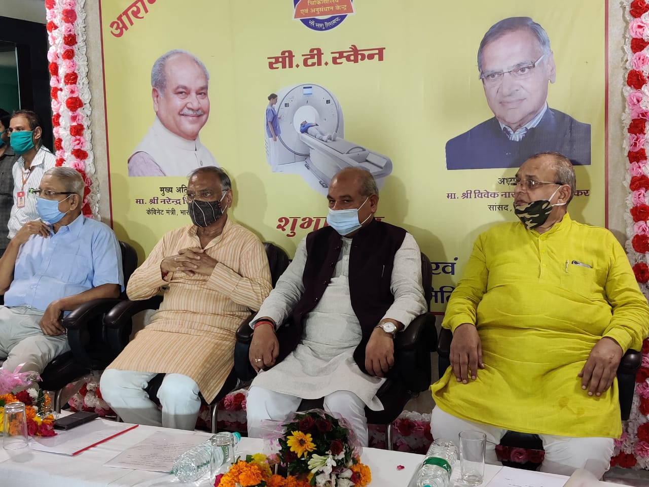 ग्वालियर 24 जुलाई 2021/ केंद्रीय कृषि मंत्री श्री नरेंद्र सिंह तोमर ने शनिवार को ग्वालियर में राष्ट्रीय स्वयंसेवक संघ की प्रेरणा से स्व. तारणेकर स्मृति सेवा न्यास द्वारा संचालित आरोग्यधाम चिकित्सालय एवं अनुसंधान केंद्र सिटी सेंटर में सीटी स्कैन मशीन का शुभारंभ किया। इस अवसर पर कार्यक्रम की अध्यक्षता सांसद श्री विवेक नारायण शेजवलकर ने की।